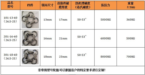保养链耐磨性好,抗疲劳性强,根据使用条件寿命达3000-8000小时。拆装方便,省时省力,产品规格齐全,可与进口装载机所匹配,轮胎保护链,采用高科技耐磨材料制成其结构新颖紧凑,性能稳定,主要适用于矿山作业的装载机,其轮胎磨损快,使用寿命短,轮胎价格昂贵,使用成本高,将本产品严密的包裹在装载机的轮胎上,可以有效的保护装载机的轮胎,不被尖锐的石块划伤刺破,延长了轮胎的使用寿命,使用一条轮胎保护链,能节省十条轮胎以上的费用还能提高装载机的工作效率和安全是矿山作业的必备品。