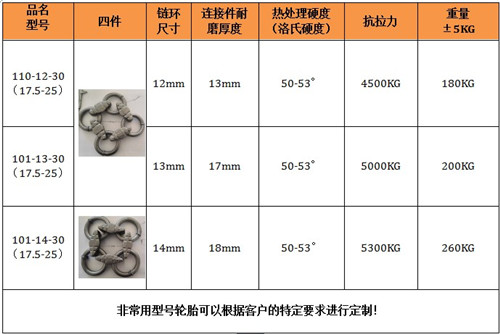保养链耐磨性好,抗疲劳性强,根据使用条件寿命达3000-8000小时。拆装方便,省时省力,产品规格齐全,可与进口装载机所匹配,轮胎保护链,采用高科技耐磨材料制成其结构新颖紧凑,性能稳定,主要适用于矿山作业的装载机,其轮胎磨损快,使用寿命短,轮胎价格昂贵,使用成本高,将本产品严密的包裹在装载机的轮胎上,可以有效的保护装载机的轮胎,不被尖锐的石块划伤刺破,延长了轮胎的使用寿命,使用一条轮胎保护链,能节省十条轮胎以上的费用还能提高装载机的工作效率和安全是矿山作业的必备品。
