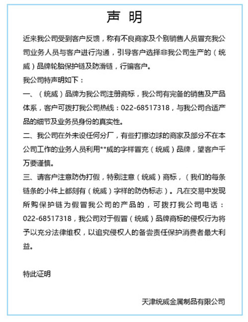 轮胎保护链是采用国内外先进生产工艺,利用优质合金钢材料,经精密铸造,高强度全自动闪光对焊,编结构合理,利用特殊焊接工艺焊接而成的一种轮胎保护设备。